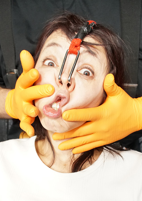 昔は凄くおモテになられたであろう美熟女の水上由紀恵さん。普段はここでは絶対に言えない程のお堅いお仕事をされているそうで、職場にいたらちょっと怖そうなイメージ…。僕たちも恐る恐る顔面弄りに入っていく中でまずは御自身でセルフ変顔。お顔をそんな簡単には触らせて頂けなさそうな雰囲気を察知して、セルフの【鼻割り箸芸】正直、ここでの反応が悪かったら…と覚悟を決めた切り口。なんと!恥ずかしがりながらも楽しんでくれている!!も~ココからは僕たちのペース。熟女の方はお肌が柔らかい(張りがない?)からハンド弄りが楽しい楽しい!!それにしても鼻が上がっている時の水上さんは某有名歌手に似ていたなぁ~w